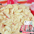 | 原材料名 | 小麦粉(国内製造)、りんごチップ(りんご、植物油、マルトトリオースシロップ)、りんごチップ(りんご、植物油、水飴、食塩)、マーガリン、砂糖、食塩、水飴、ごま、りんご果汁入りペースト/酸化防止剤(V.C)、乳化剤、香料、着色料(カロチン、カラメル)、トレハロース、酸味料、増粘多糖類、膨張剤、(一部に小麦・りんご・乳成分・ごま・大豆を含む) |