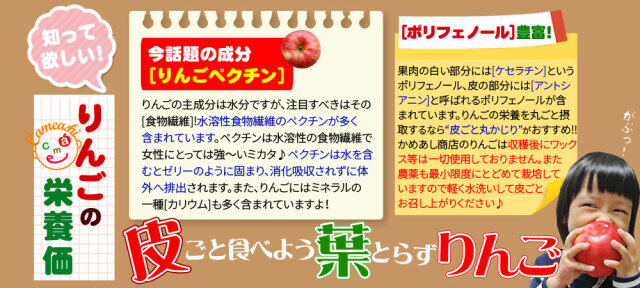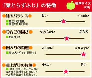 | りんごの蜜は生理現象で、葉とらずふじは「蜜が必ず入っている」と保証する規格ではありませんことをご了承の上ご注文下さい。 尚、年明け後は、蜜はほぼ果肉に吸収されて見えなくなる性質がございます。 |