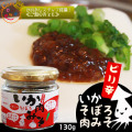 | 原材料 | ●いかそぼろ肉(ピリ辛) 醤油、米こうじ、いか、砂糖、清酒、真昆布エキス、青唐辛子、椎茸エキス、にんにく(青森県田子産)(原材料の一部に大豆・小麦を含む) ●いかそぼろ肉なんばん(大辛) 醤油、米こうじ、いか、砂糖、清酒、青唐辛子、真昆布エキス、にんにく(青森県田子産)椎茸エキス、(原材料の一部に大豆・小麦を含む) |